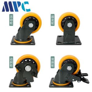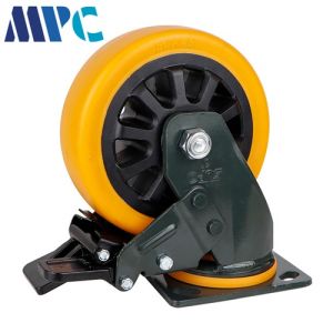 Heavy orange wear-resistant polyurethane industrial heavy equipment universal wheel with brake caster